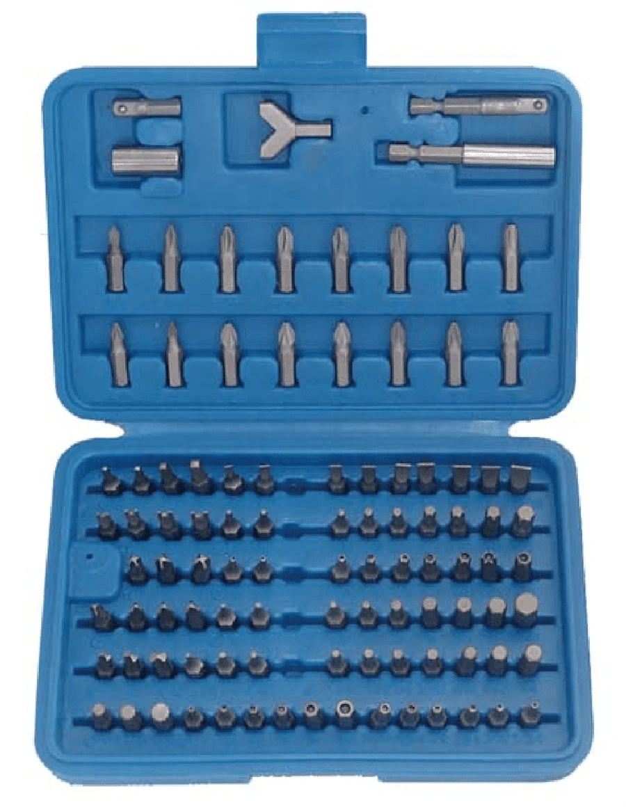 - 95 Bits Schlitz, Kreuzschlitz (PH), T-Profil (für Torx), Kreuzschlitz (PZ), Innensechskant, Innenvielzahn (für XZN), Vierkant, für Spanner®, für Torque®, für Tri Wing®, Doppelkeil