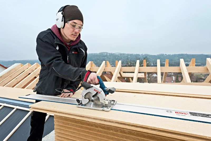Die neue Bosch Handkreissäge GKS 55+ GCE besticht durch eine höhere Schnittkapazität bei gleicher Größe und Gewicht. Dank uneingeschränkter Kompalibilität des Bosch Führungsschienensystems, können Sie die Bosch Handkreissäge GKS 55+ GCE mit allen gängigen Bosch Führungsschienen nutzten. Das integrierte Bremssystem und der Sanftanlauf garantieren ein sicheres Arbeiten.
