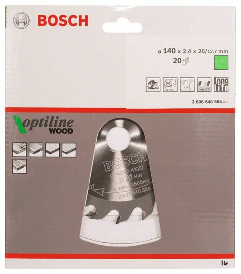 BOSCH Professional Kreissägeblatt Optiline Wood für Handkreissägen, 140 x 20/12,7 x 2,4 mm, 20 2608640586