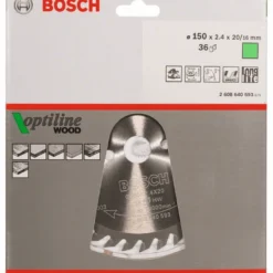 BOSCH Professional Kreissägeblatt Optiline Wood für Handkreissägen, 150 x 20/16 x 2,4 mm, 36 2608640593