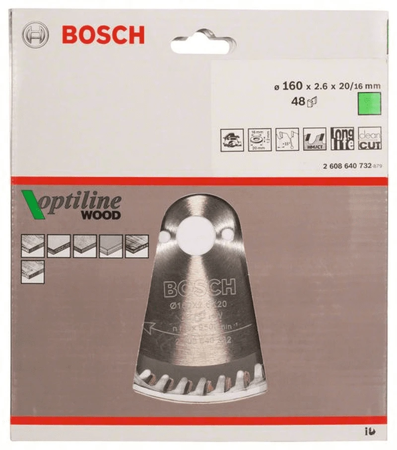 BOSCH Professional Kreissägeblatt Optiline Wood für Handkreissägen, 160 x 20/16 x 2,6 mm, 48 2608640732