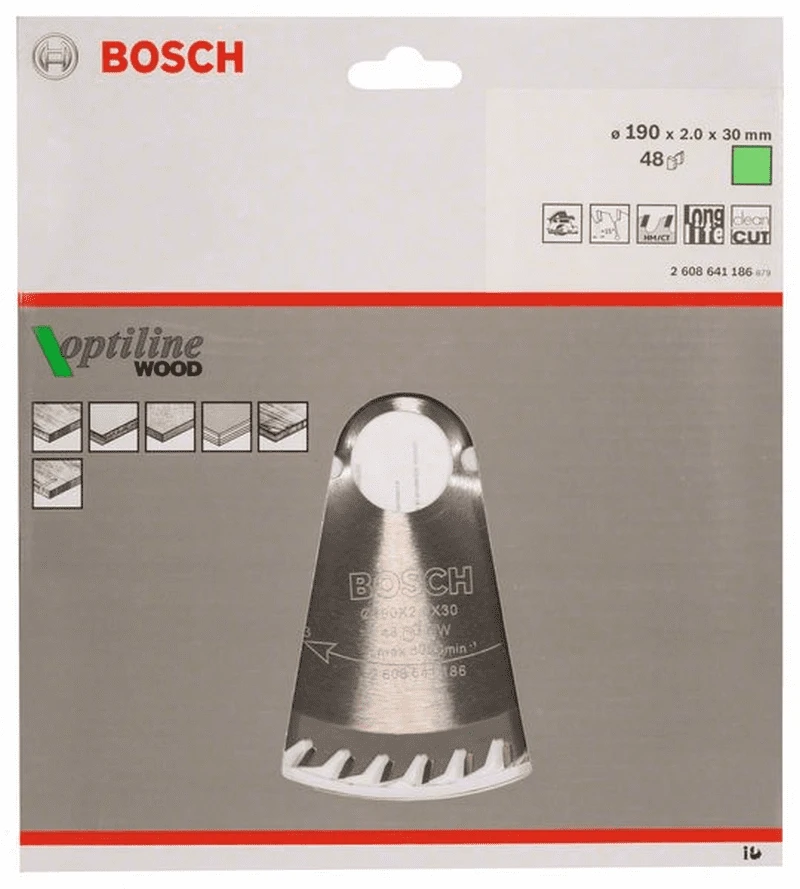 BOSCH Professional Kreissägeblatt Optiline Wood für Handkreissägen, 190 x 30 x 2,0 mm, 48 2608641186