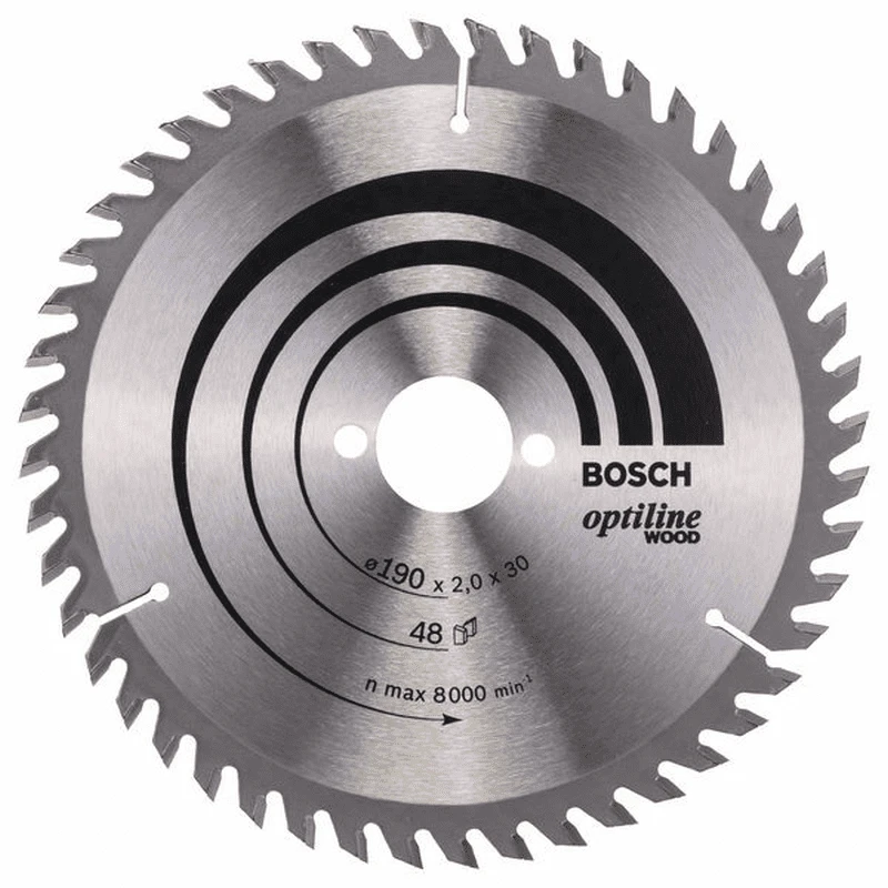 Kreissägeblatt Optiline Wood für Handkreissägen. Außendurchmesser: 190 mm, Bohrung: 30 mm, Schnittbreite: 2,0 mm, Zähnezahl: 48. Das präzise Blatt für den Qualitätsschnitt in allen Holzarten.