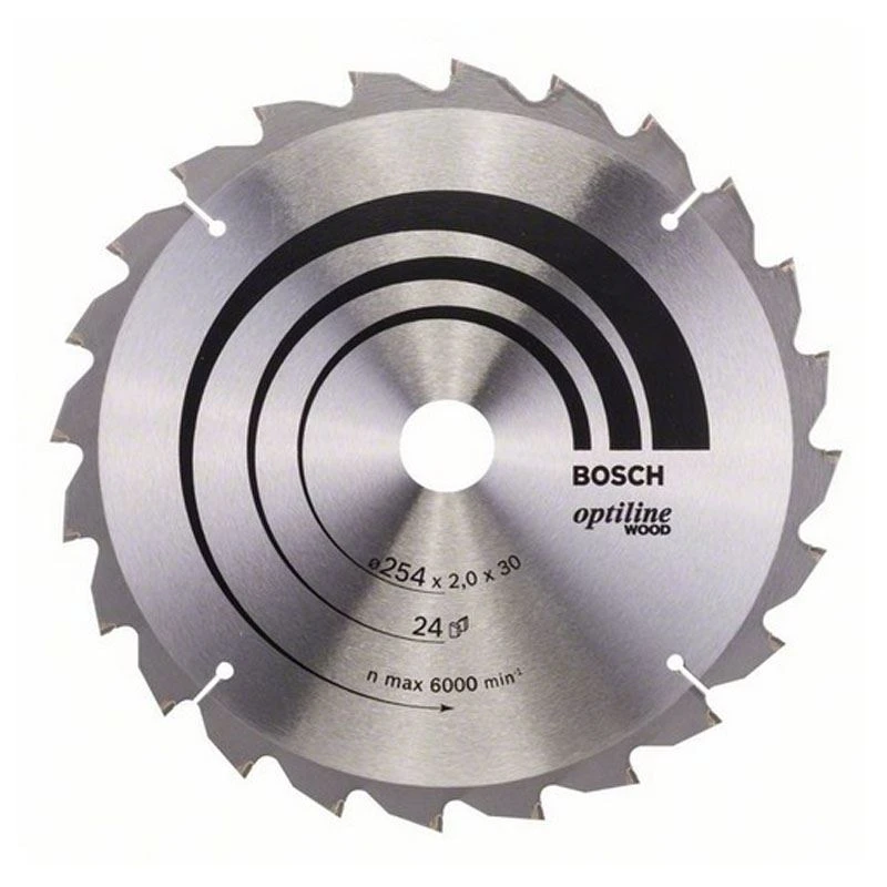 Kreissägeblatt Optiline Wood für Kapp- und Gehrungssägen. Außendurchmesser: 254 mm, Bohrung: 30 mm, Schnittbreite: 2,0 mm, Zähnezahl: 24, Zahnform: WZ Negativ. Das präzise Blatt für den Qualitätsschnitt in allen Holzarten.