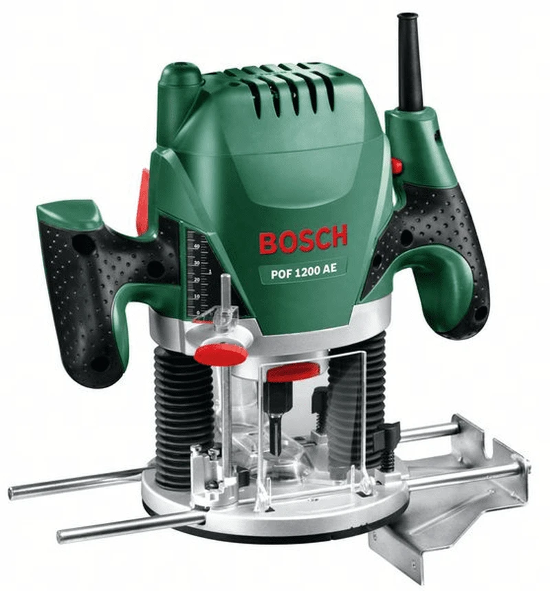 Oberfräse POF 1200 AE. Kraftvoll und präzise für kreatives Arbeiten mit Holz. Materialgerechte Vorwahl der Drehzahl durch Bosch-Electronic mit Stellrad und Gasgebeschalter. Einfacher und schneller Fräserwechsel durch integrierte Spindelarretierung. Bosch-SDS-System: Ermöglicht ein einfaches, werkzeugloses Einsetzen der Kopierhülse. Starker 1.200-Watt-Motor für anspruchsvolle Aufgaben in allen Holzarten. Anschluss zur Staubabsaugung – für staubfreies Arbeiten. Transparente Spanschutzhaube schützt vor umherfliegenden Spänen. Herausragendes ergonomisches Design mit Softgrip für komfortables und sicheres Arbeiten. Absaugadapter (2 600 499 077), Gabelschlüssel (1 609 203 V40), Kopierhülse (2 609 200 138), Nutfräser (Durchmesser 8 mm) (2 608 628 381), Parallelanschlag (1 609 203 M85), Spannzangen (3 Stück), Zentrierstift (2 609 200 310)