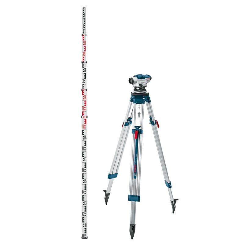 BOSCH Optisches Nivelliergerät GOL 20 D Set mit Stativ BT 160, Teleskop-Nivelliergerätlatte GR 500 im Koffer