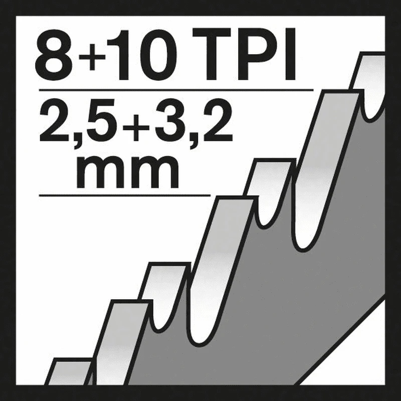 | Zahnteilung [mm] / TPI | 2.5+3.2 / 8+10 |