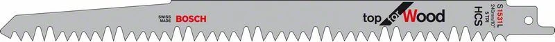 Säbelsägeblatt S 1531 L. Top for Wood. Werkstoff HCS. Zahnausführung: geschränkt, geschliffen. Einsatzbereiche: Für Grobholz, nagelfrei (kleiner als 190 mm Stärke), für lebendes Holz ausasten (mit Durchmesser kleiner als 190 mm), für Brennholz (mit Durchmesser kleiner als 190 mm). Inhalt der Verkaufsverpackung: 25 Stück.