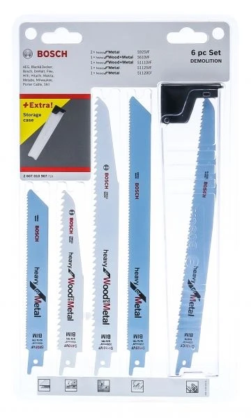Stichsägeblatt-Set Demolition. 6-teilig. Inhalt des Sets: 2 x S 925 VF Heavy for Metal, 1 x S 610 VF Heavy for Wood and Metal, 1 x S 1110 VF Heavy for Wood and Metal, 1 x S 1125 VF Heavy for Metal, 1 x S 1120 CF Heavy for Metal.