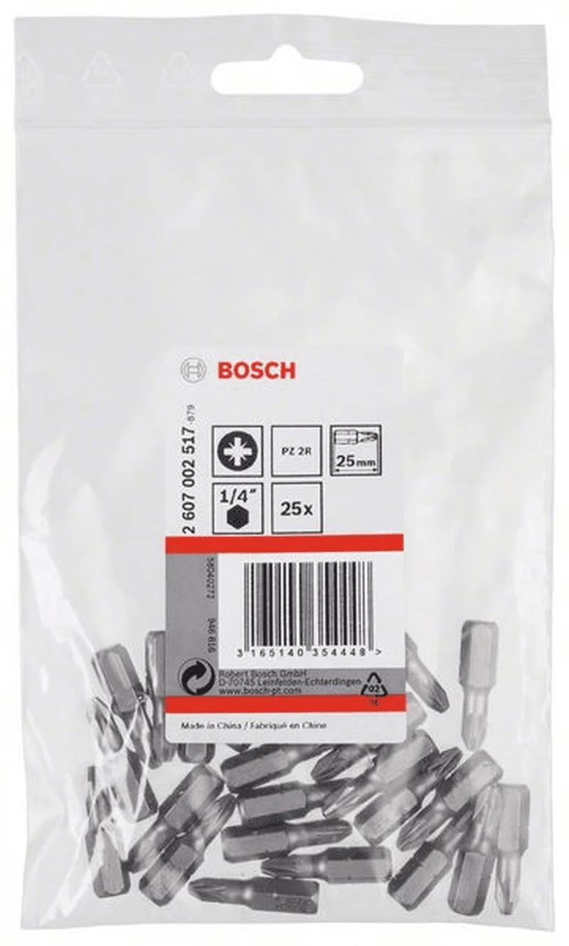 BOSCH Professional Schrauberbit Extra-Hart, reduziert PZ2R, 25 mm, 25er-Pack 2607002517