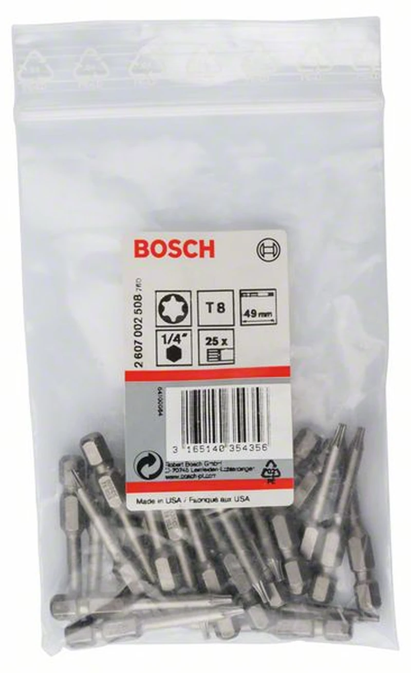 BOSCH Professional Schrauberbit Extra-Hart, T8, 49 mm, 25er-Pack 2607002508
