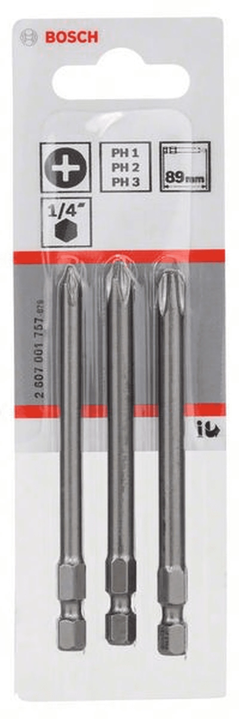 BOSCH Professional Schrauberbit-Set Extra-Hart, 3-teilig, PH1, PH2, PH3, 89 mm 2607001757