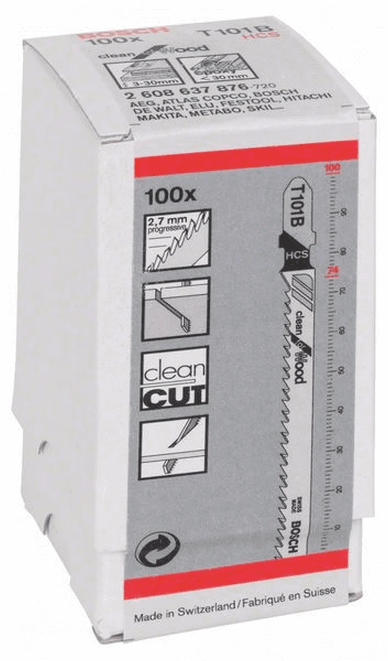 BOSCH Professional Stichsägeblatt T 101 B, Clean for Wood, 100er-Pack 2608637876