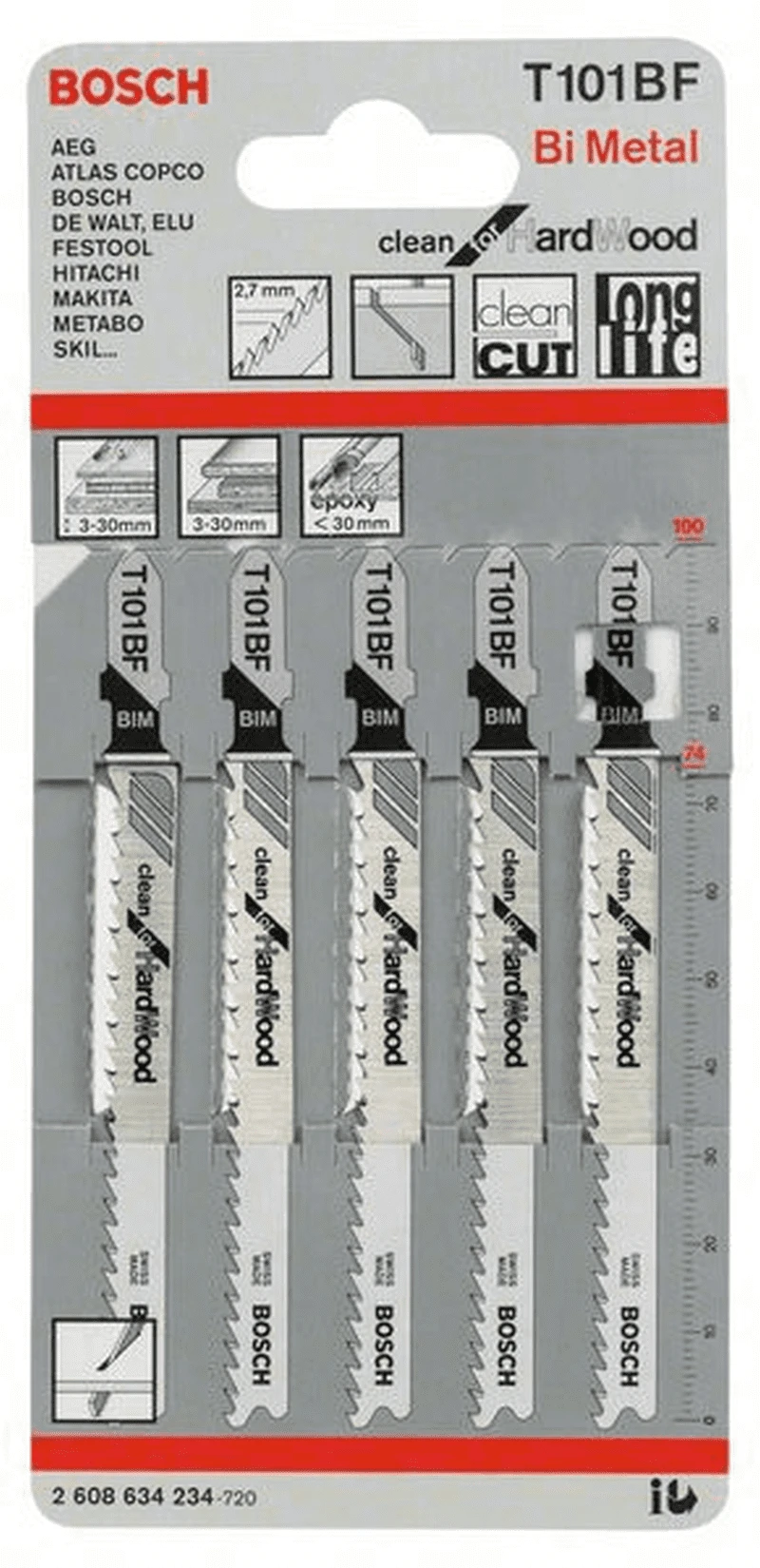 BOSCH Professional Stichsägeblatt T 101 BF, Clean for Hard Wood, 5er-Pack 2608634234