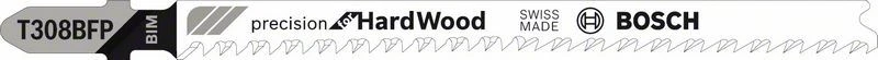 Stichsägeblatt Precision for Wood. Typ: T 308 BFP. Werkstoff: BIM. Zahnausführung: freiwinkel-, zähnegeschliffen, Gesamtlänge: 117 mm, Zahnteilung: 2,2 mm. Einsatzbereiche: Für Hartholz und abrasive Holzwerkstoffe. Speziell für saubere, winkelgenaue Schnitte. Für Weichholz, Platten, Sperrholz, Hartholz, Platten, beschichtete Platten und Multiplexplatten von 5 bis 50 mm Stärke. Für Küchenarbeitsplatten kleiner als 50 mm Stärke. Inhalt der Verkaufspackung: 3 Stück.