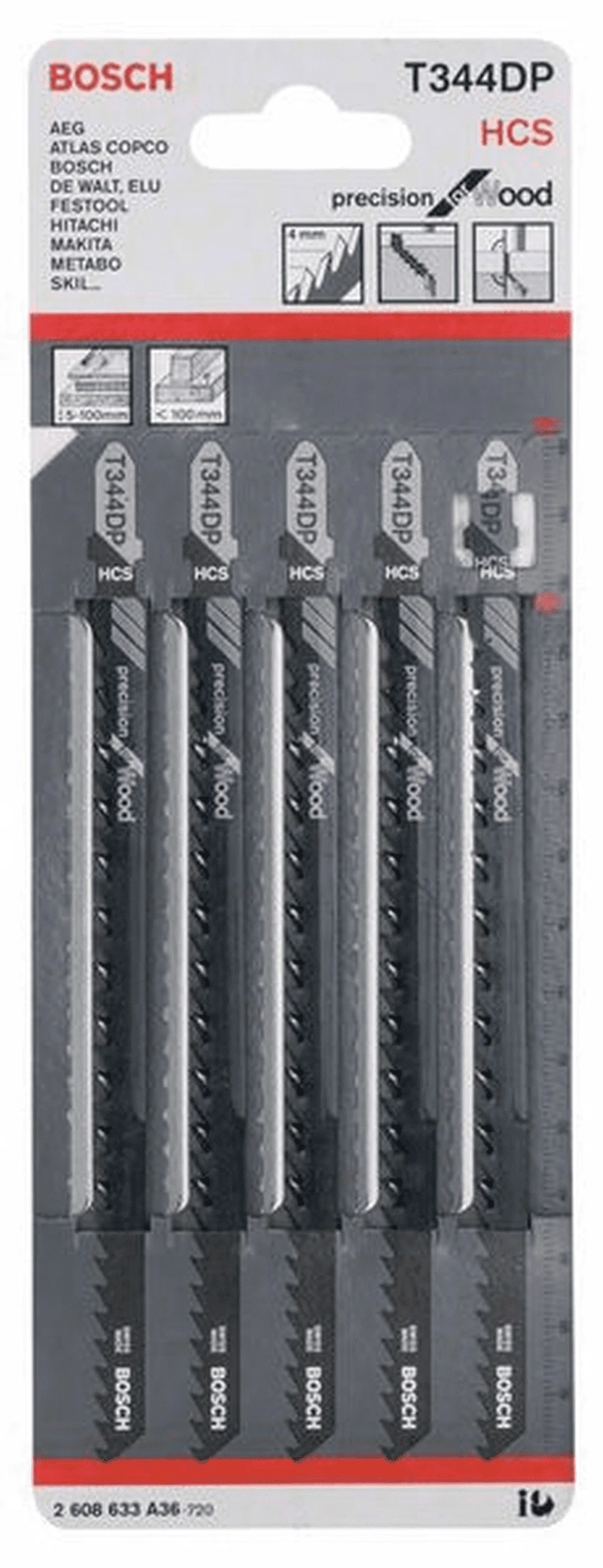 BOSCH Professional Stichsägeblatt T 344 DP, Precision for Wood, 5er-Pack 2608633A36