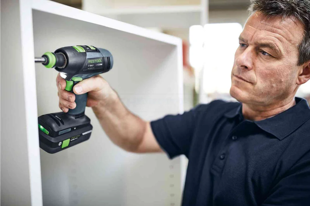 Für volle Flexibilität beim Bohren und Schrauben: vollelektronische Drehmomenteinstellung, CENTROTEC Schnellwechselsystem, Winkel- und Exzentervorsatz sowie Tiefenanschlag lösen jede Bohr- und Schraubanwendung. Die Kombination aus Li-HighPower Akkupack und bürstenlosem und somit wartungsfreiem EC-TEC Motor machen den Akku-Bohrschrauber T 18+3 leicht, langlebig und ausdauernd. Für einen sorglosen Alltag sind Akkuschrauber und Akkupack mit dem Festool Service rundum abgesichert. Erhältlich in T-Bauform oder – je nach individueller Vorliebe – als C 18 auch in der einzigartigen C-Bauform.