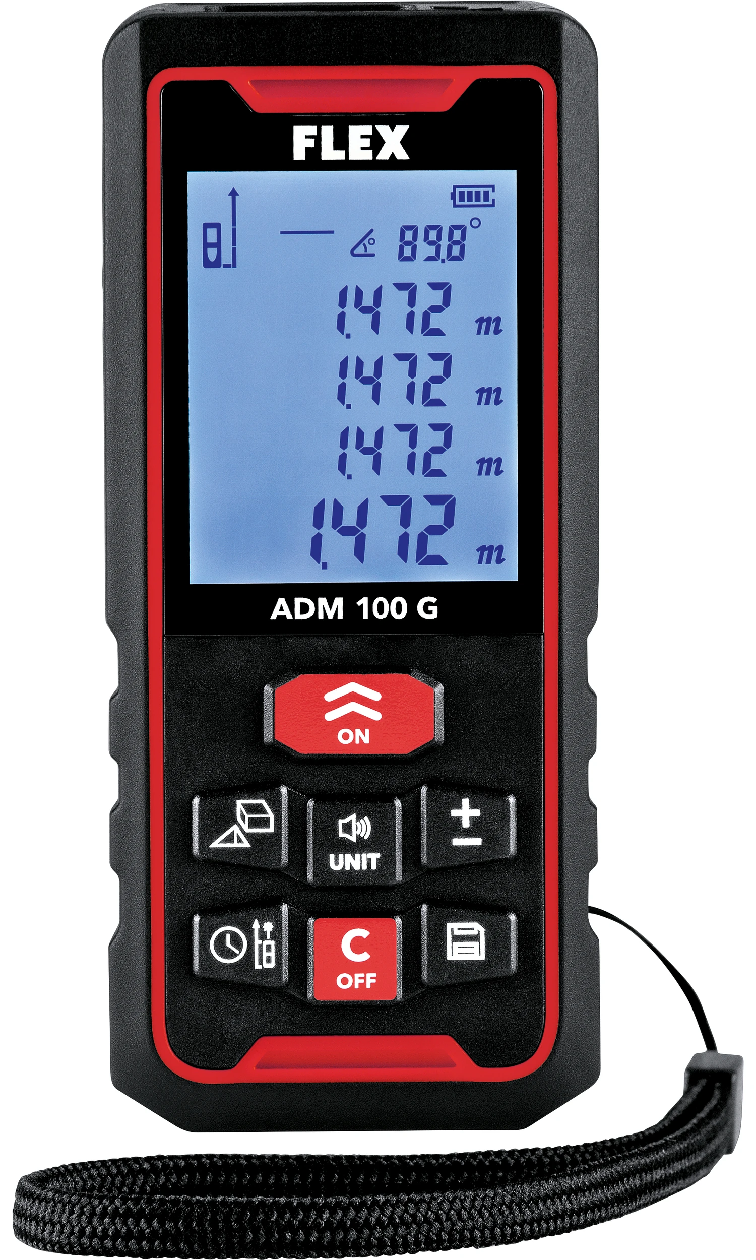 - Umschaltbare Maßangabe in m/mm, Inch/Feet