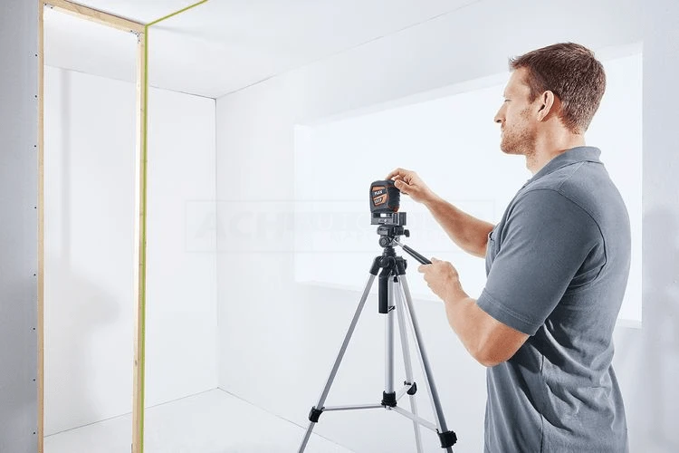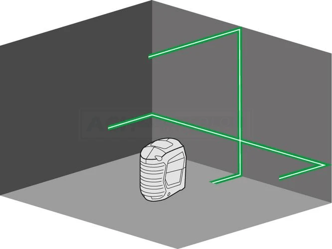 - Mit je einer einzeln schaltbaren horizontalen und vertikalen Laserlinie