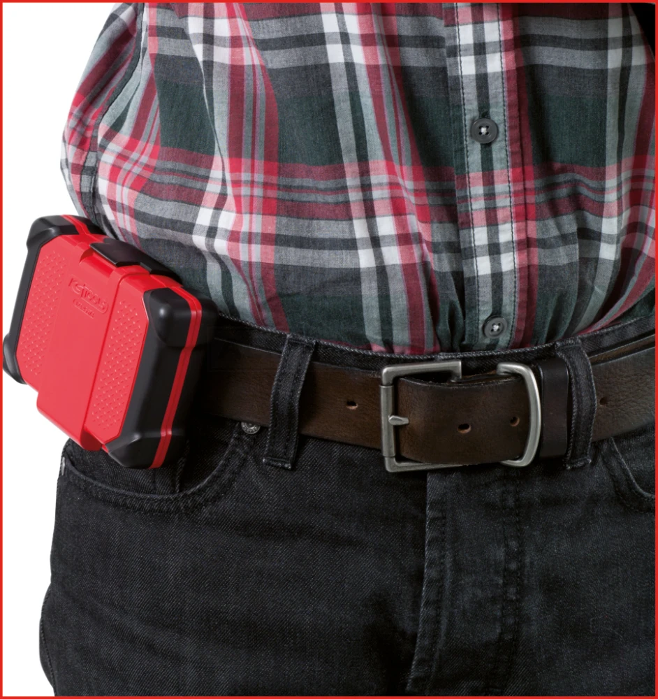 - mit praktischem Gürtelhalter