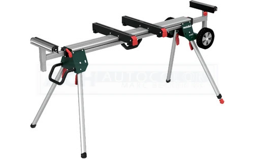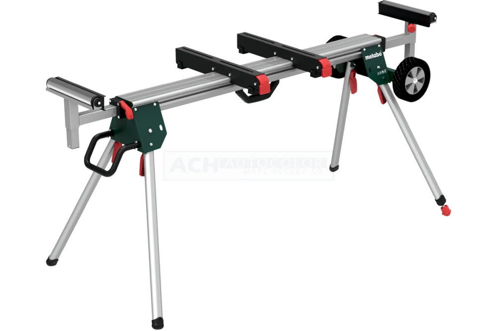 Leichtes und robustes Kappsägen-Untergestell mit Trolley-Funktion für den mobilen Einsatz auch mit montierter Säge